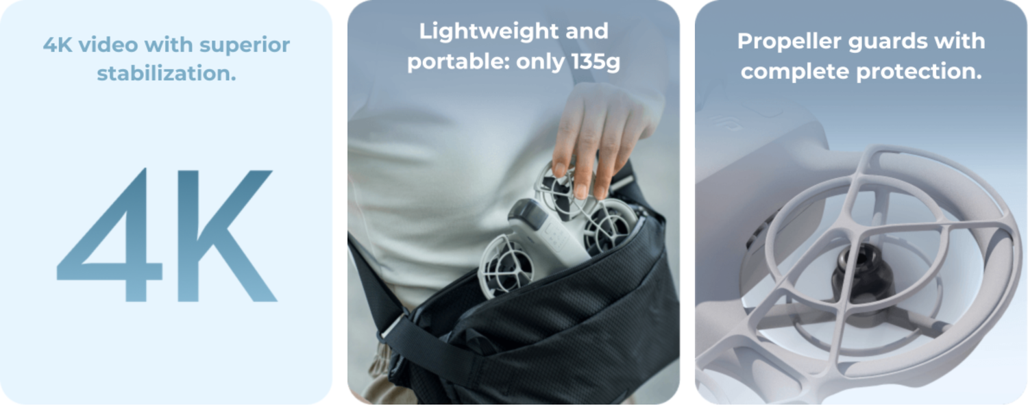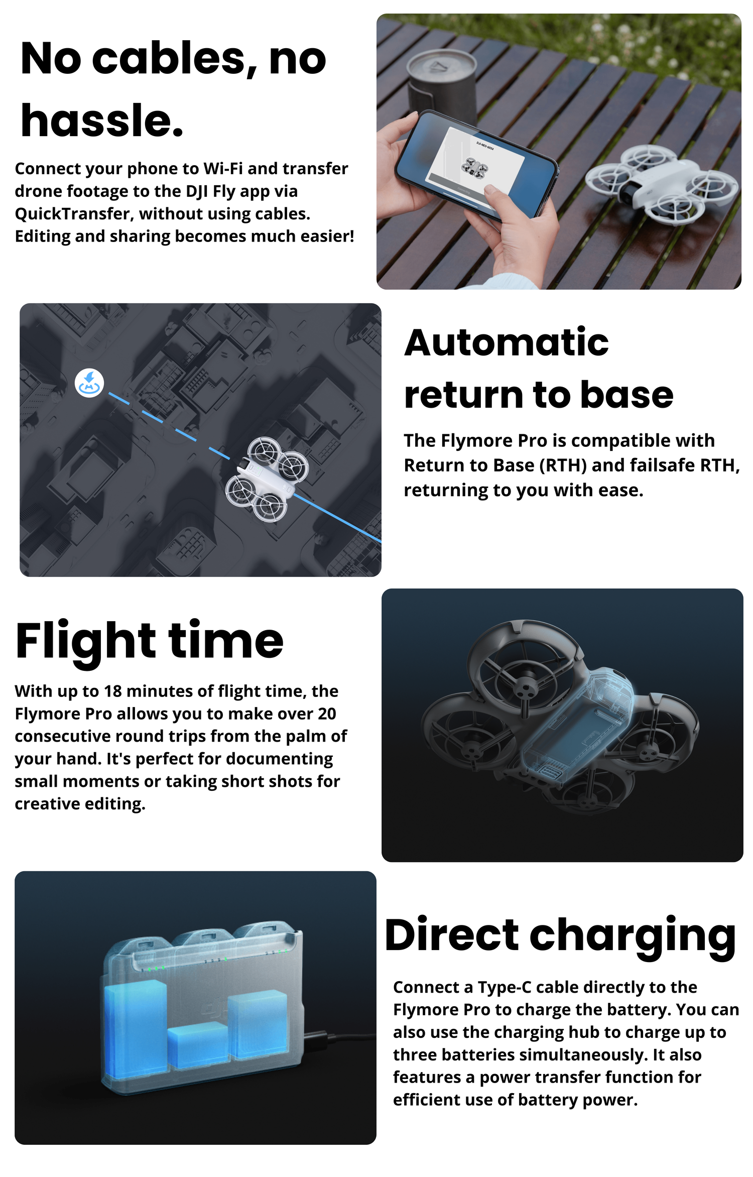 The Flymore Pro is Flymore's lightest and most compact drone to date. Weighing only 135g, it literally fits in your pocket. Rugged and with integrated propeller guards, it's easy and safe to take wherever you want.