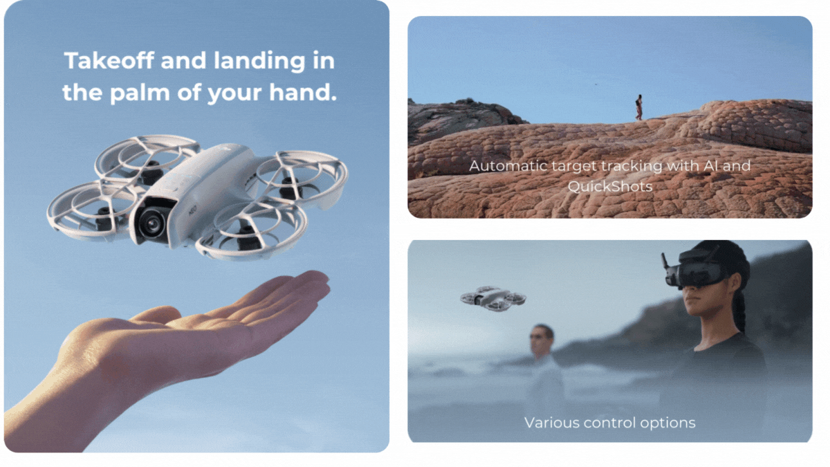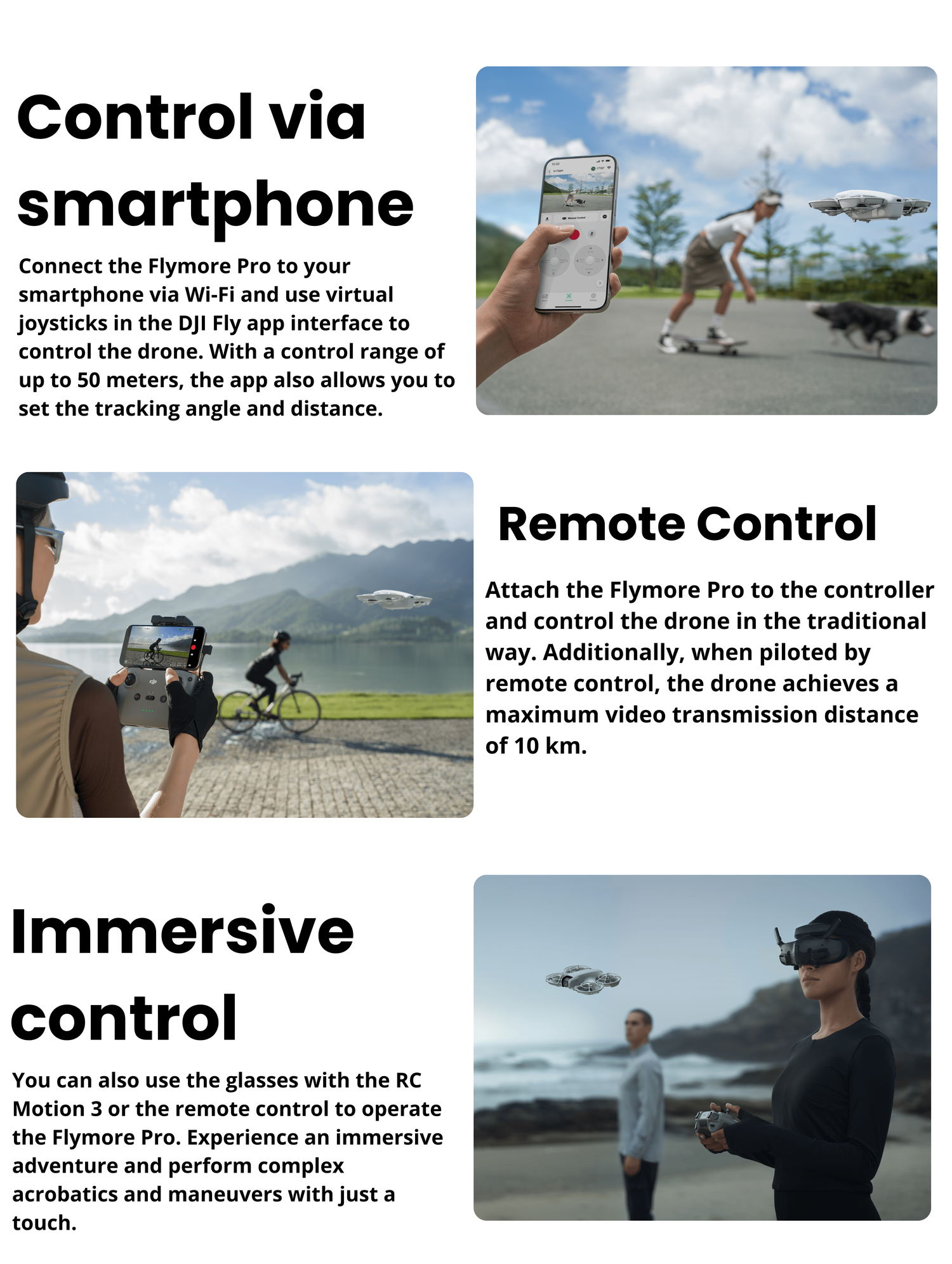 Be amazed by your new personal assistant. Equipped with advanced Artificial Intelligence algorithms, Flymore Pro can automatically follow the target to create incredible tracking shots.